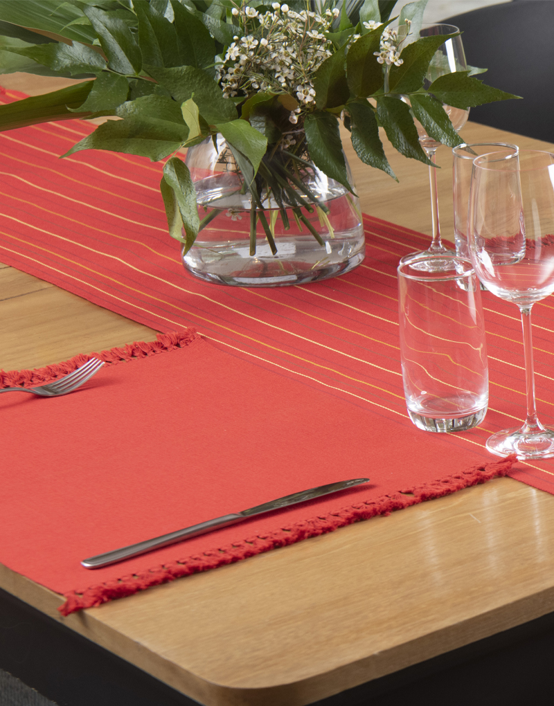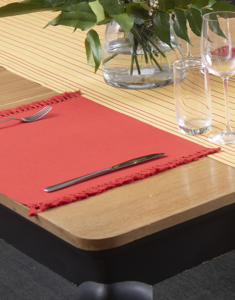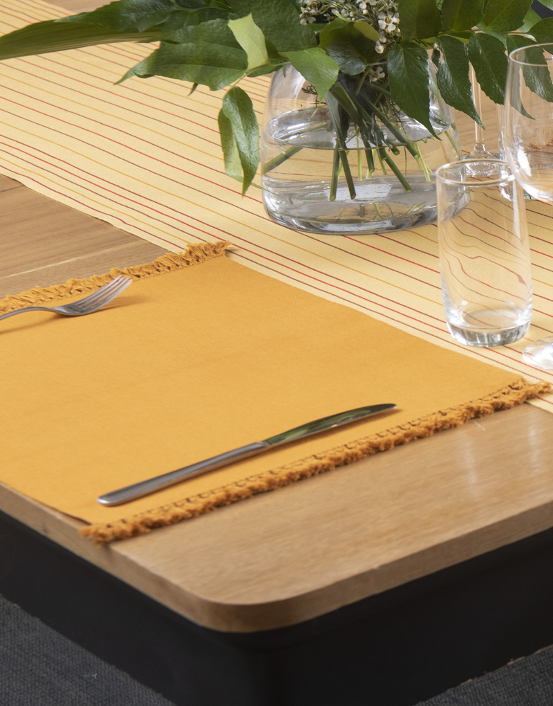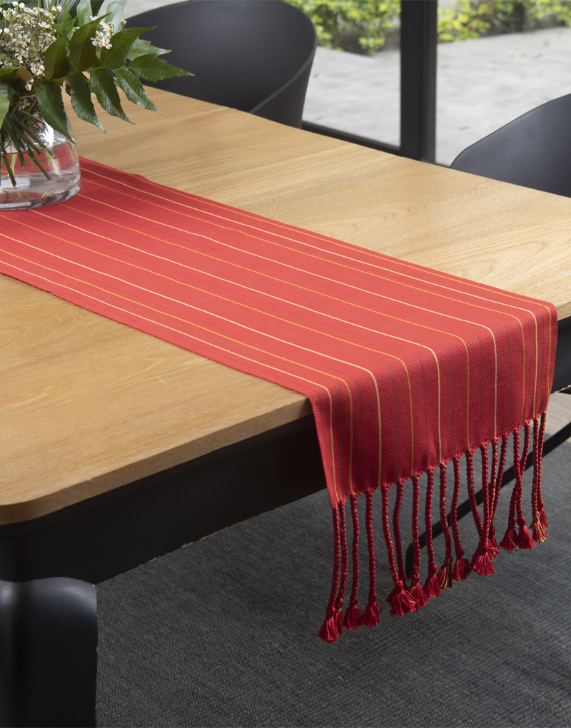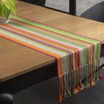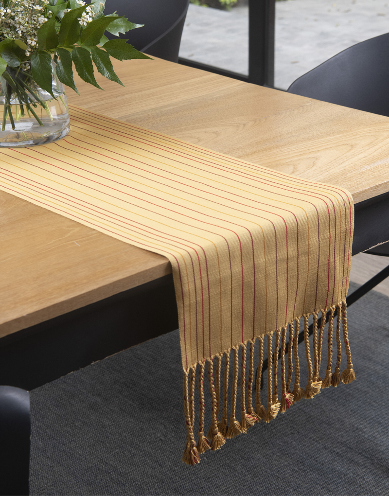 Camino de mesa de tela gruesa, rayada Sunset 4, tejido a mano con hilado de algodón Pima mercerizado, con trenzas.