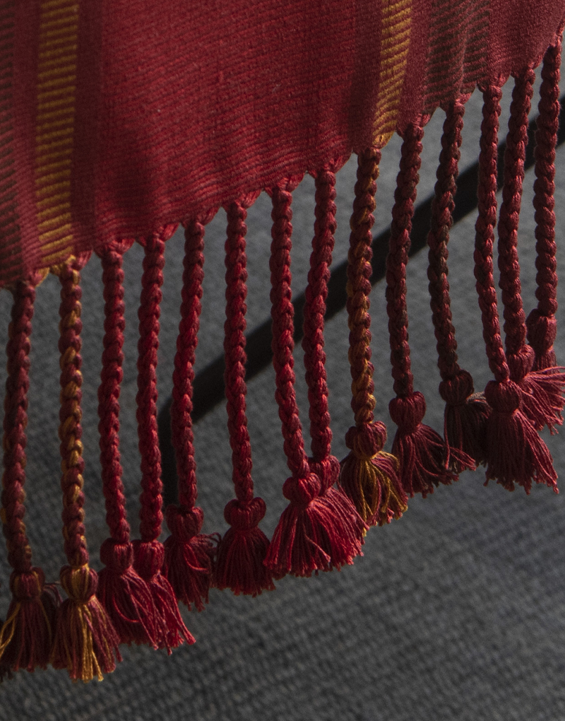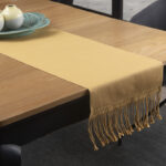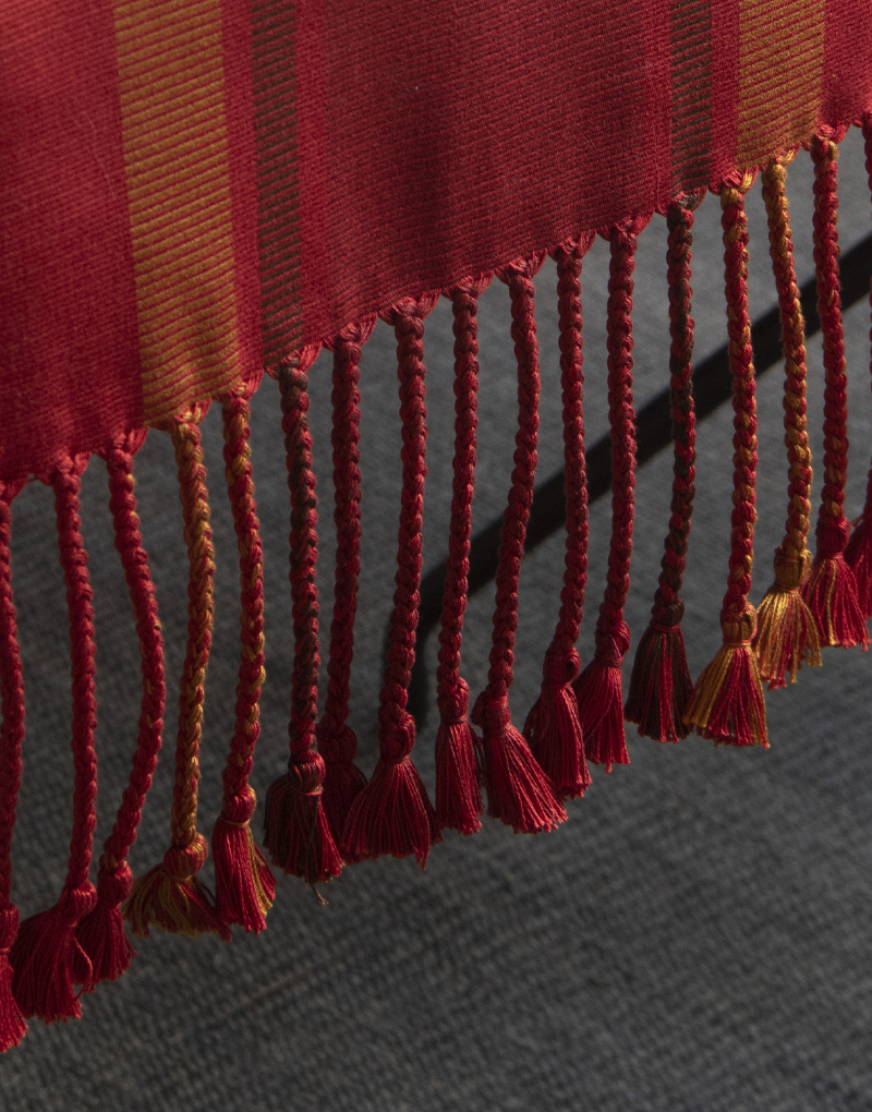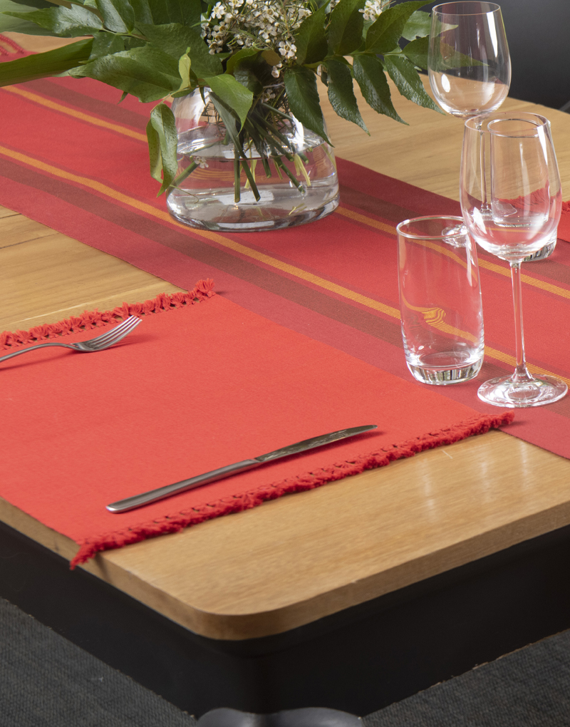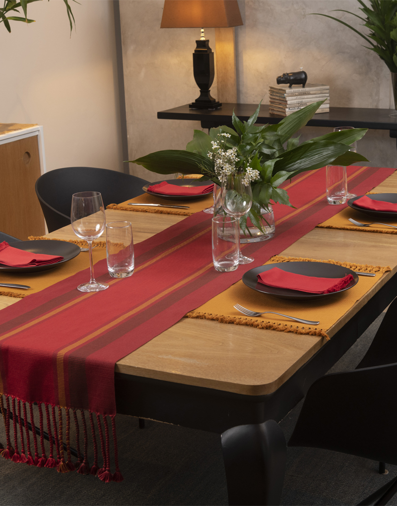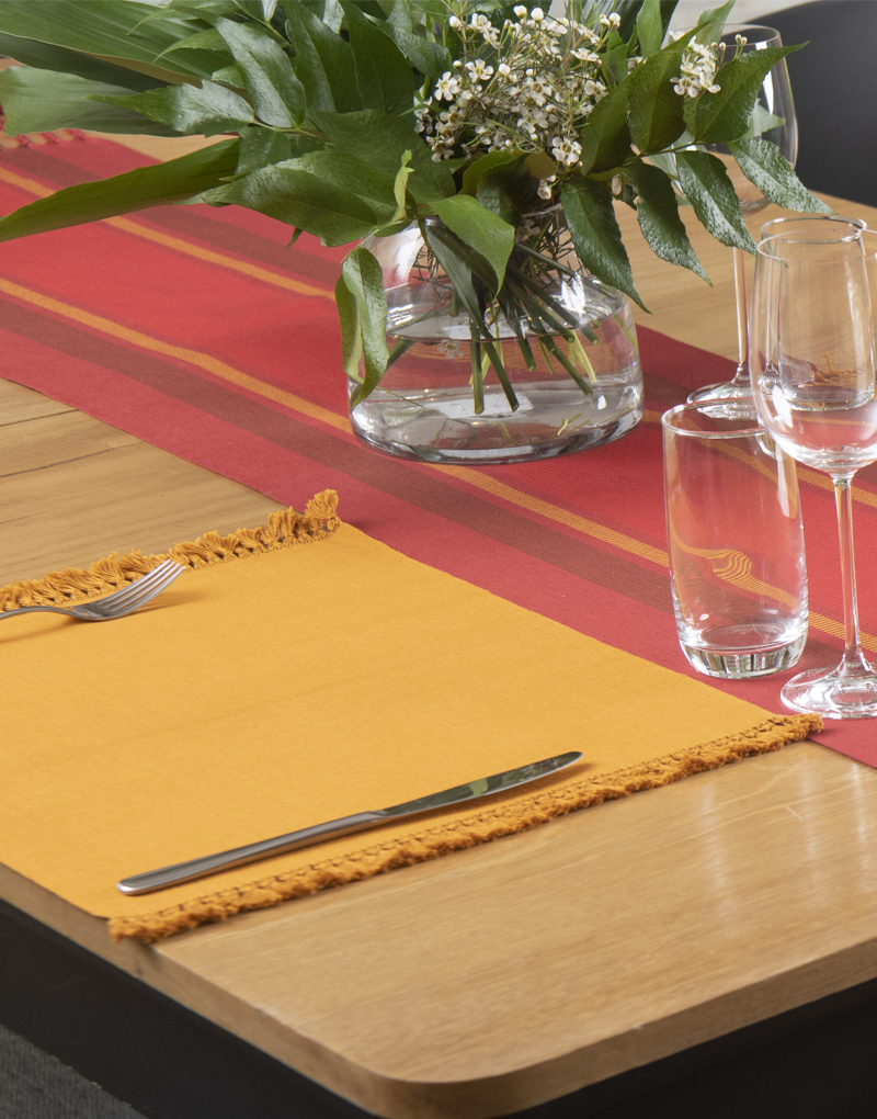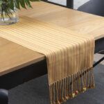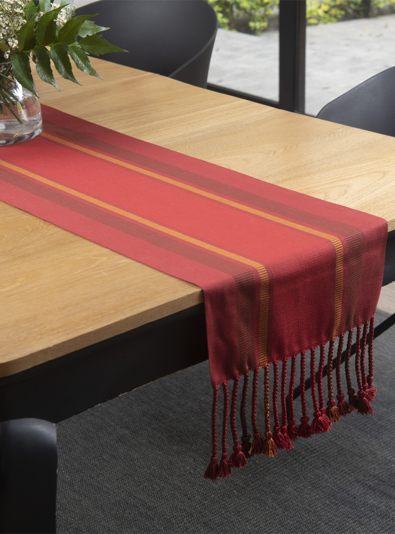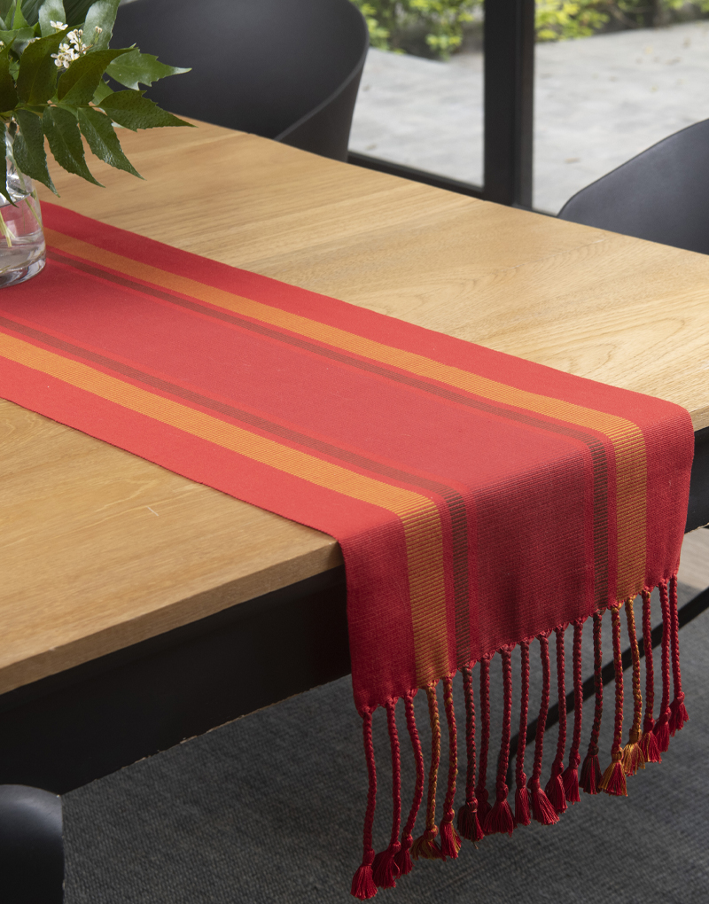 Camino de mesa de tela gruesa, rayada doble urdido Centro, tejido a mano con hilado de algodón Pima mercerizado, con trenzas.