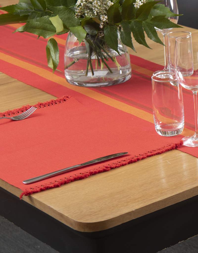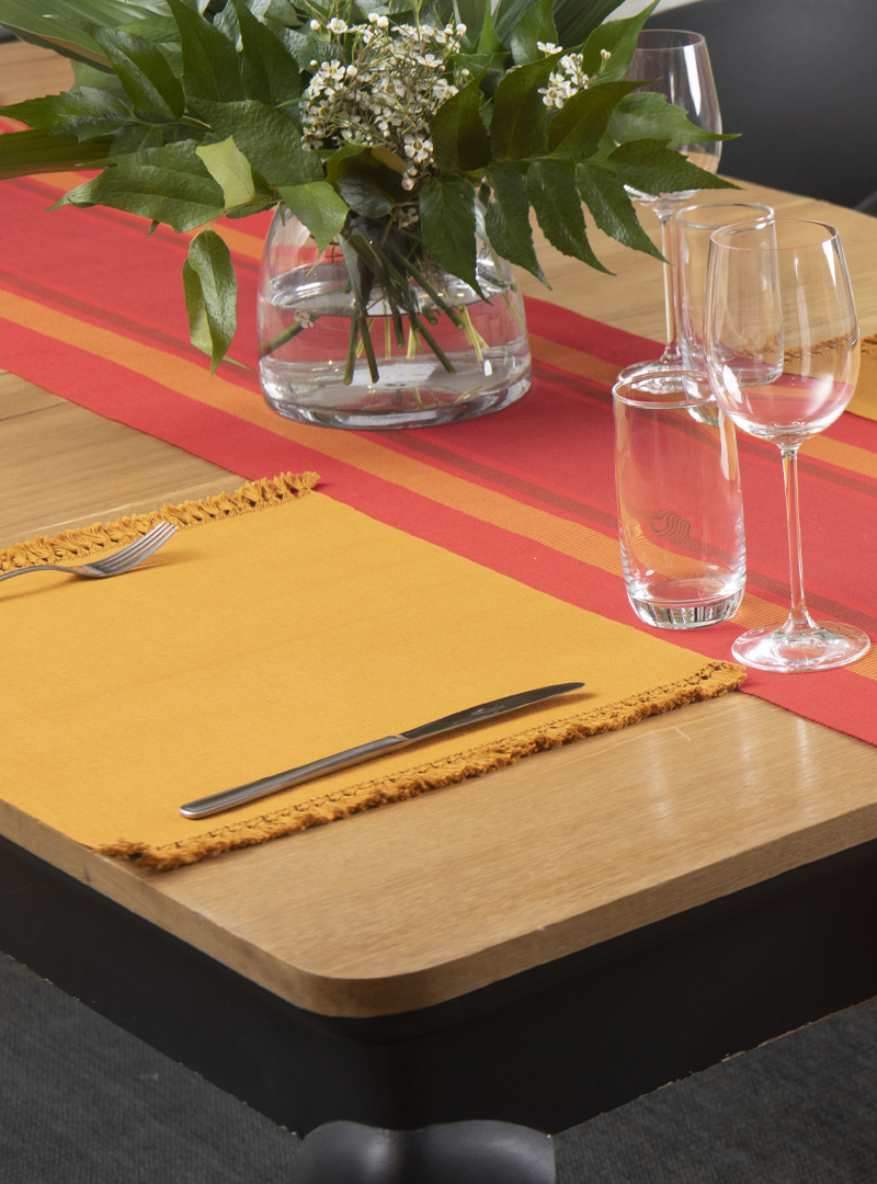 Caminos de mesa tela gruesa rayada doble urdido, diseño Centro